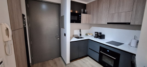 – Cocina americana full con equipamiento eléctrico, horno, encimera vitrocerámica, microondas y campana,
